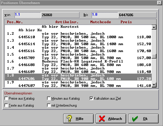 Angebot bzw. Auftrag selektiv zu übernehmen.